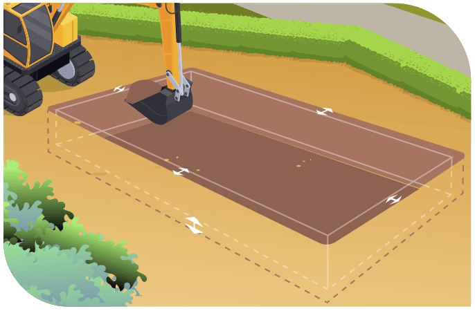 Según cálculos y estimaciones de la posición establecida se procede a realizar la excavación del pozo para la pileta utilizando pequeñas palas retroexcavadoras según el proyecto. Se finaliza con pala para realizar nivelaciones y detalles.